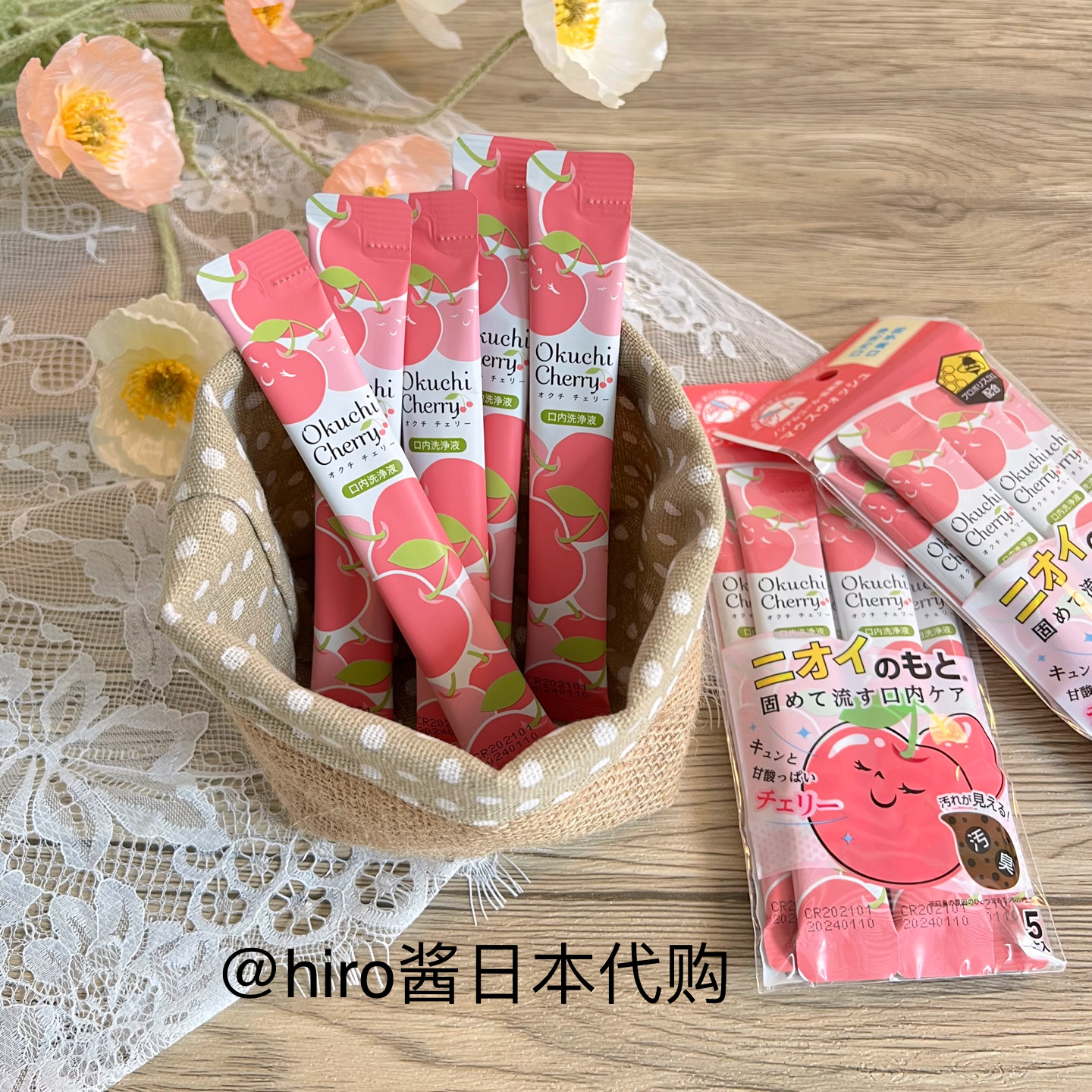 Cherry Mint Lemon Tea ~ Spot Japan Okuchi Portable Mouthwash Fresh Breath Disposable 5 Strips