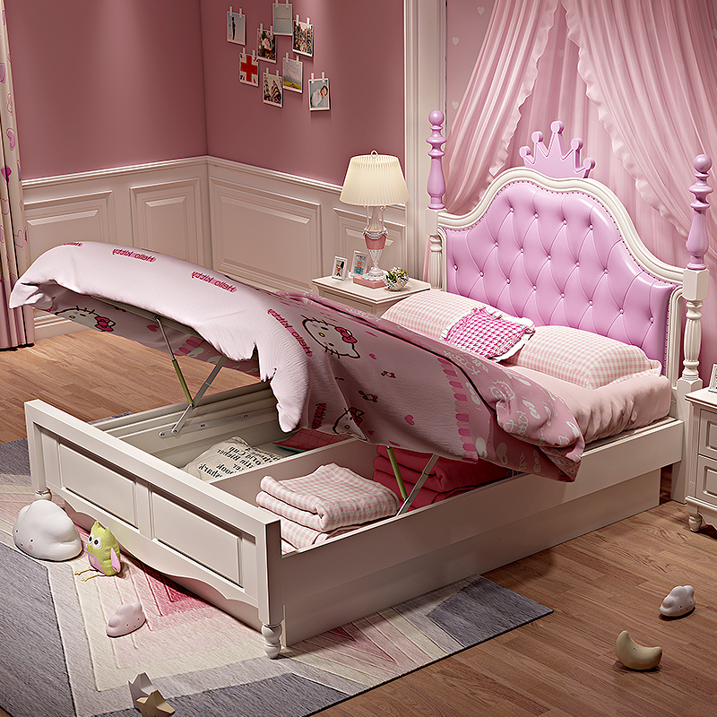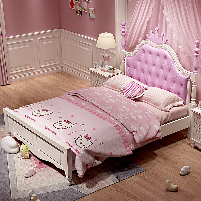 Pink solid wood bedPink solid wood bed Bedside table*1Pink solid wood bed MattressPink solid wood bed Mattress bedside table*1