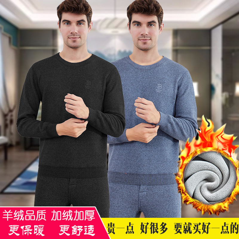 Ordos wool heating pants male father plus velvet thickening bottoming cashmere middle-aged and elderly long johns