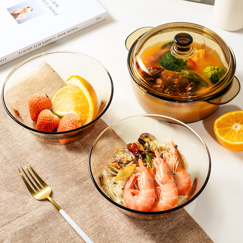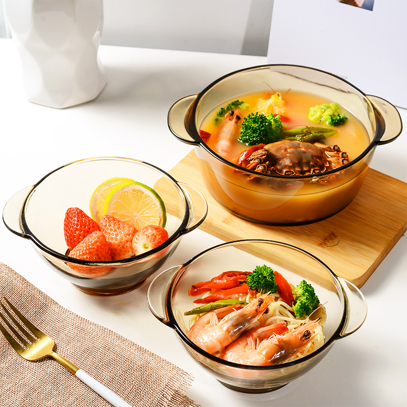 Bowl Korean version ins Winds glass Blister Noodles Bowl with lid Double ear Bowl Home Large number Dorm room High temperature resistant with student noodles