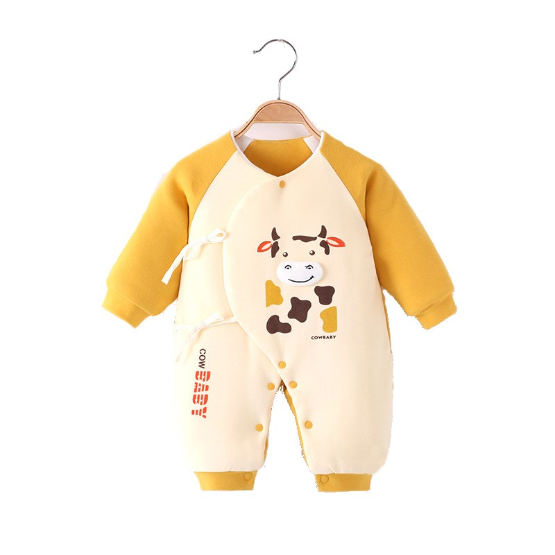 Baby jumpsuit cotton jacket autumn and winter warm romper newborn quilted thick butterfly clothes baby slanted romper