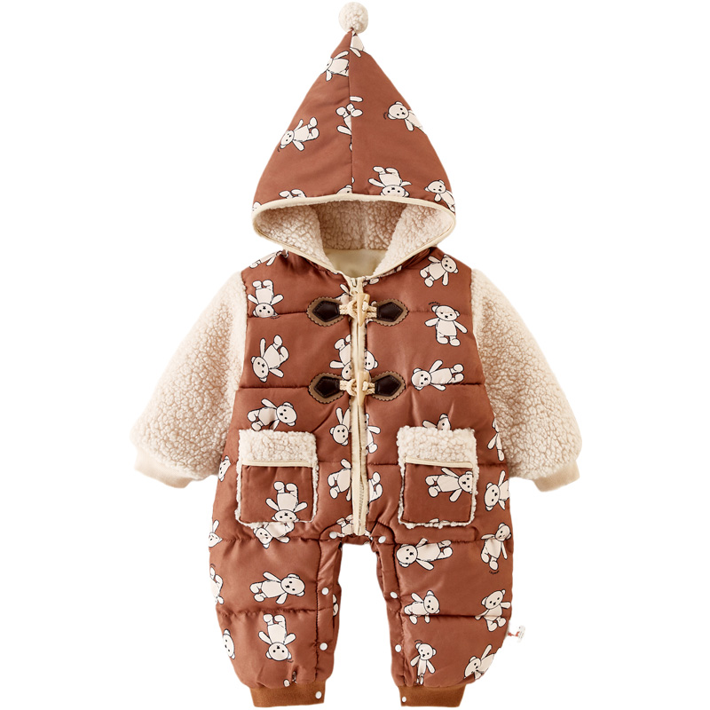 Net red baby winter jumpsuit thick cotton coat foreign style cute cartoon crawling clothes going out to report clothes newborn romper