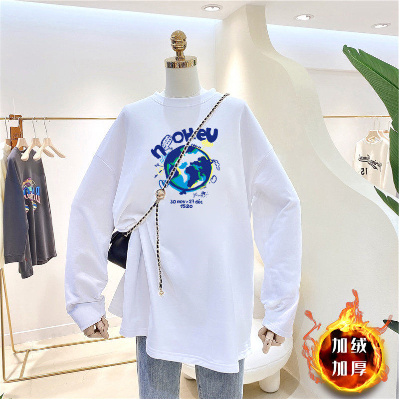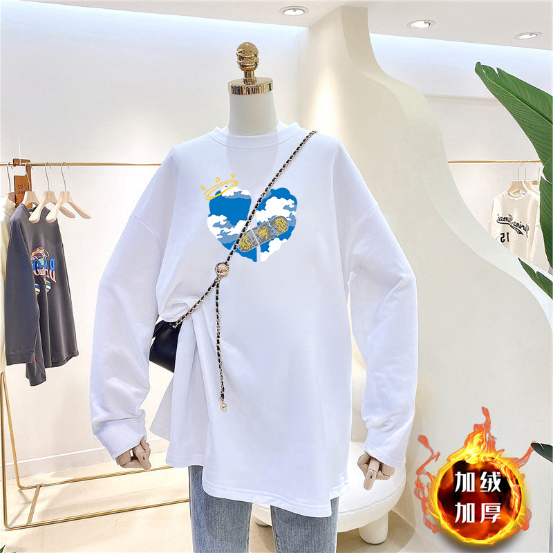 Maternity wear with thickened warm bottoming shirt women's autumn and winter Korean version loose round neck mid-length long-sleeved T-shirt top