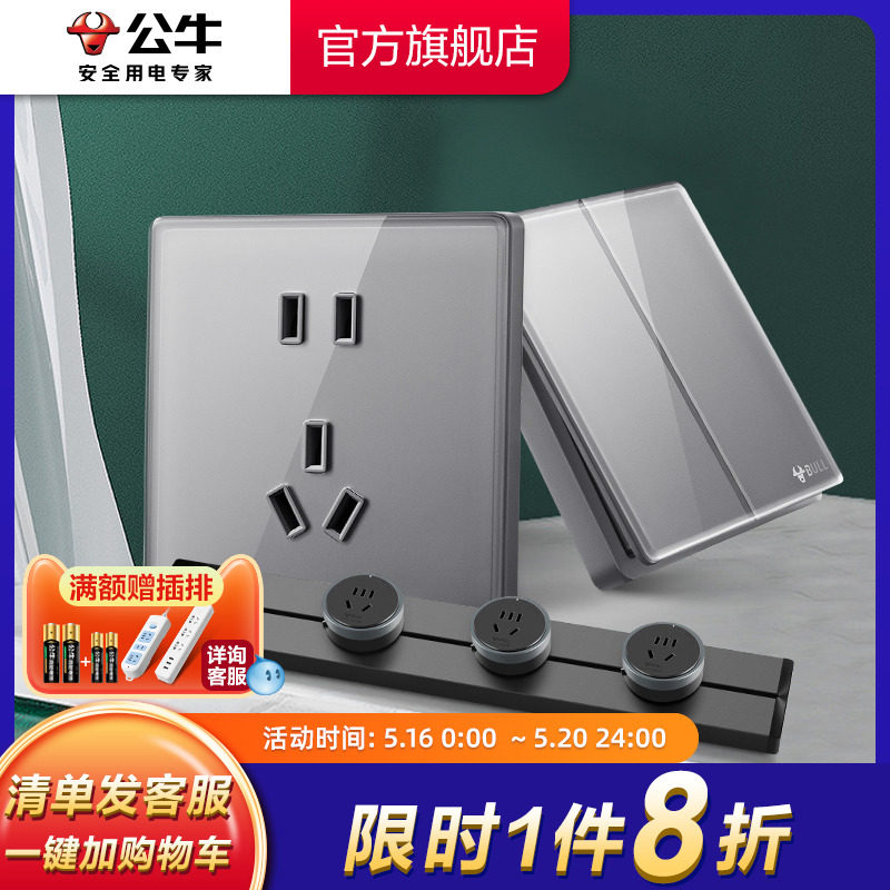 Bull socket official flagship store switch socket air conditioner 16A five - hole panel dark porous G62 gray