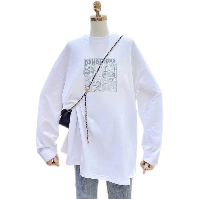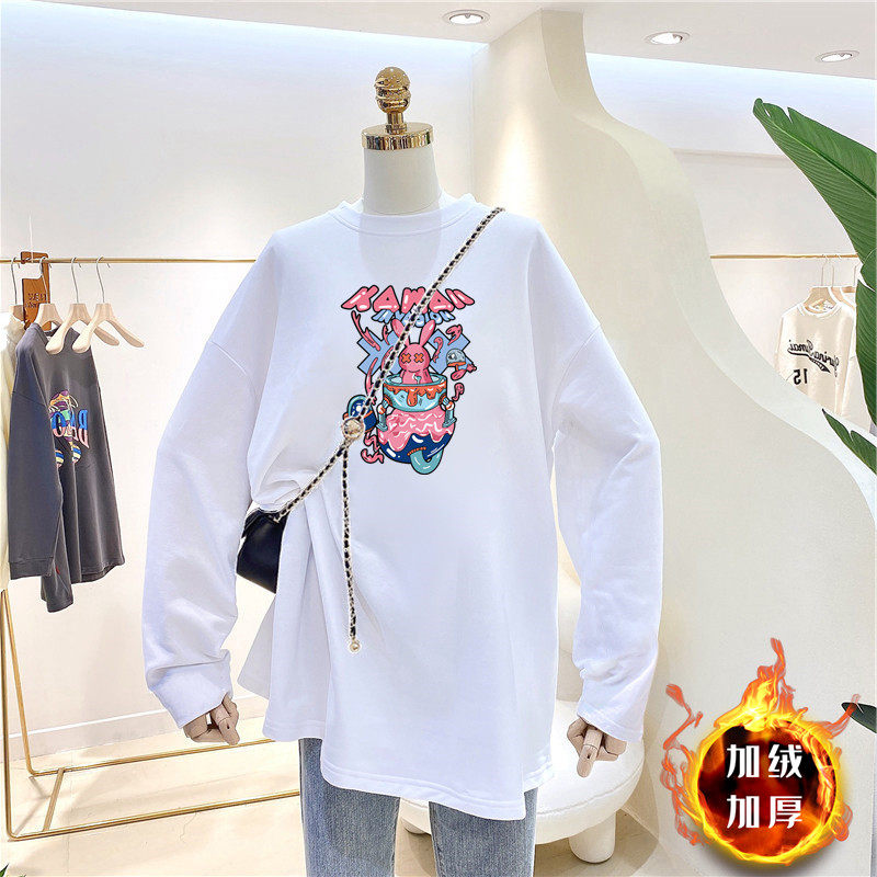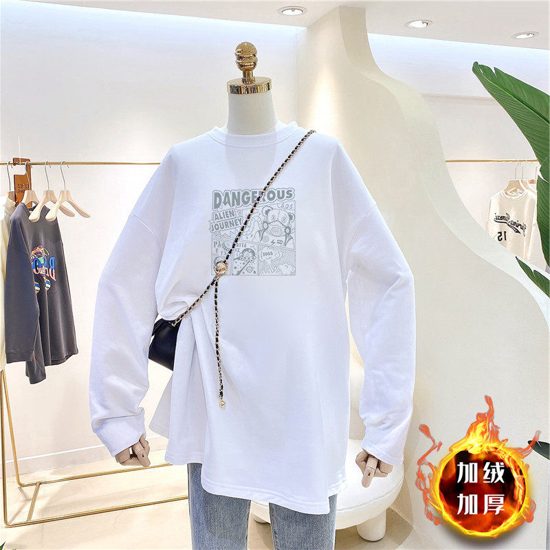 Pregnant women's velvet inner top plus velvet thick warm T-shirt mid-length version round neck white bottoming shirt women's autumn and winter