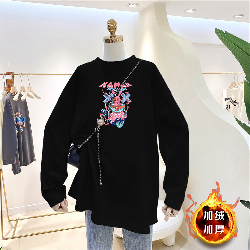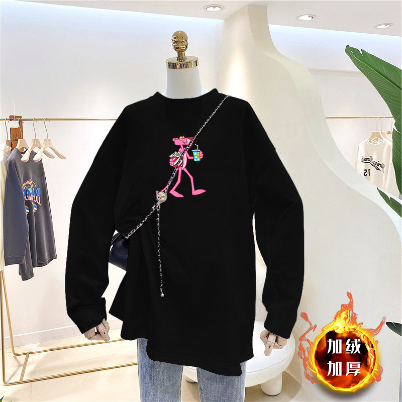 Maternity tops bottoming shirts in autumn and winter with German velvet thickened warm mid-length version loose large size round neck T-shirt women's tide