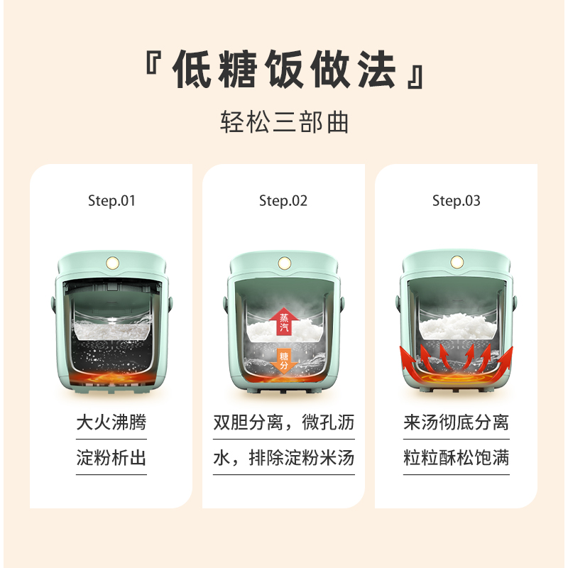 Circle Kitchen electric rice cooker Low sugar electronic pot Home Small rice soup separation 1 person cooking mini controlled sugar cooking porridge electric rice cooker