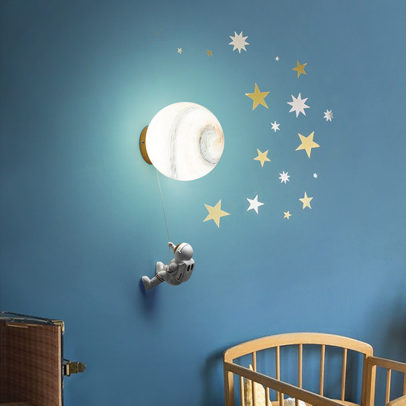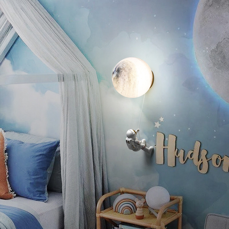 Children's room wall lamp astronaut bedroom astronaut bed head bed head lamp designer lunar light planet light creative boy lamp