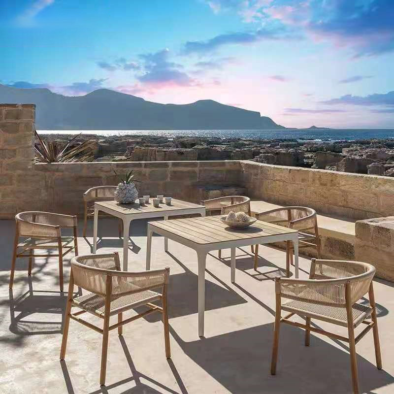 Nordic Outdoor Teak Tables and Chairs Courtyard Balcony Sun Room Chairs Combination Hotel Villa Leisure Solid Wood Rattan Chairs