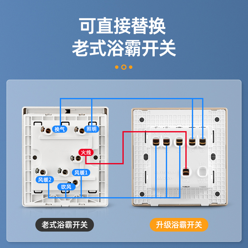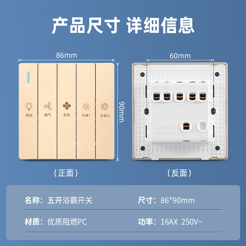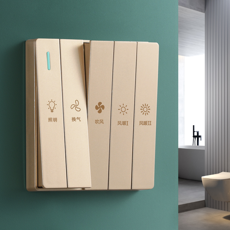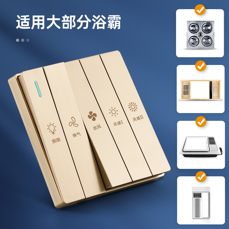 SOYI toilet switch panel 5 open bath switch 5 switch on dual motor 86 general five - in - one wind heating switch