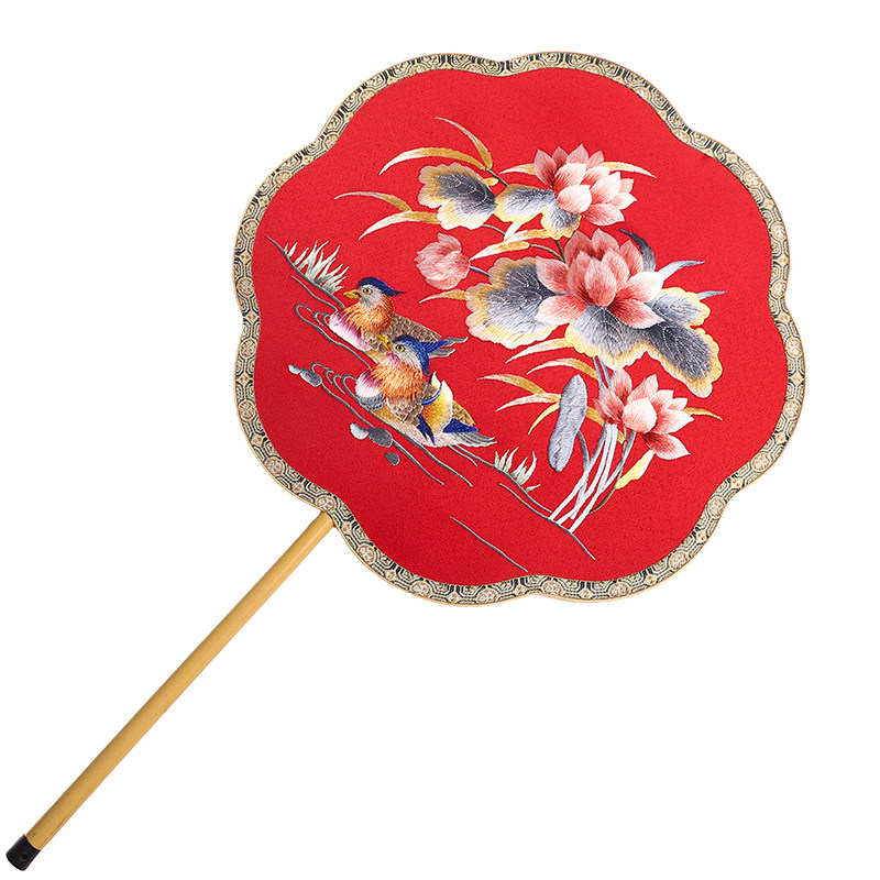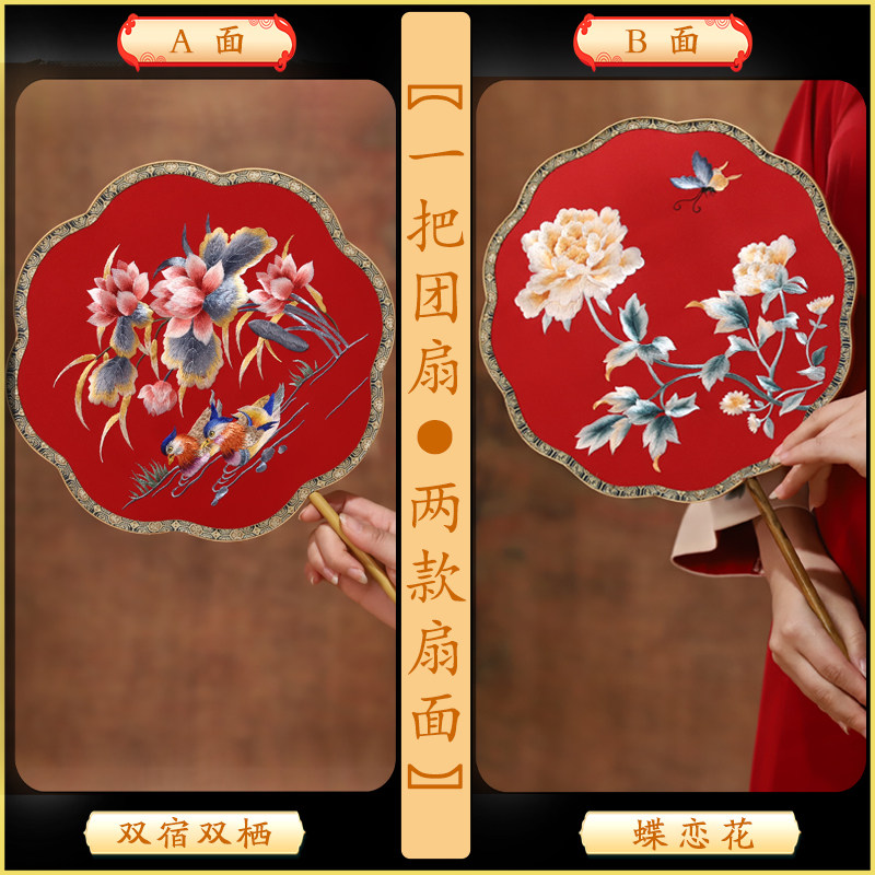 Suzhou embroidery happy fan double-sided embroidery wedding fan ancient style group fan Suzhou embroidered beauty Chinese wedding bride Xiuhe clothing palm fan