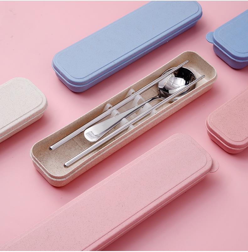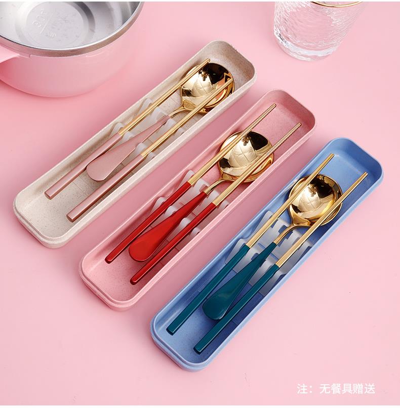 Free chopsticks and spoon box with lid on the door, portable with student cutlery box containing empty box lunch
