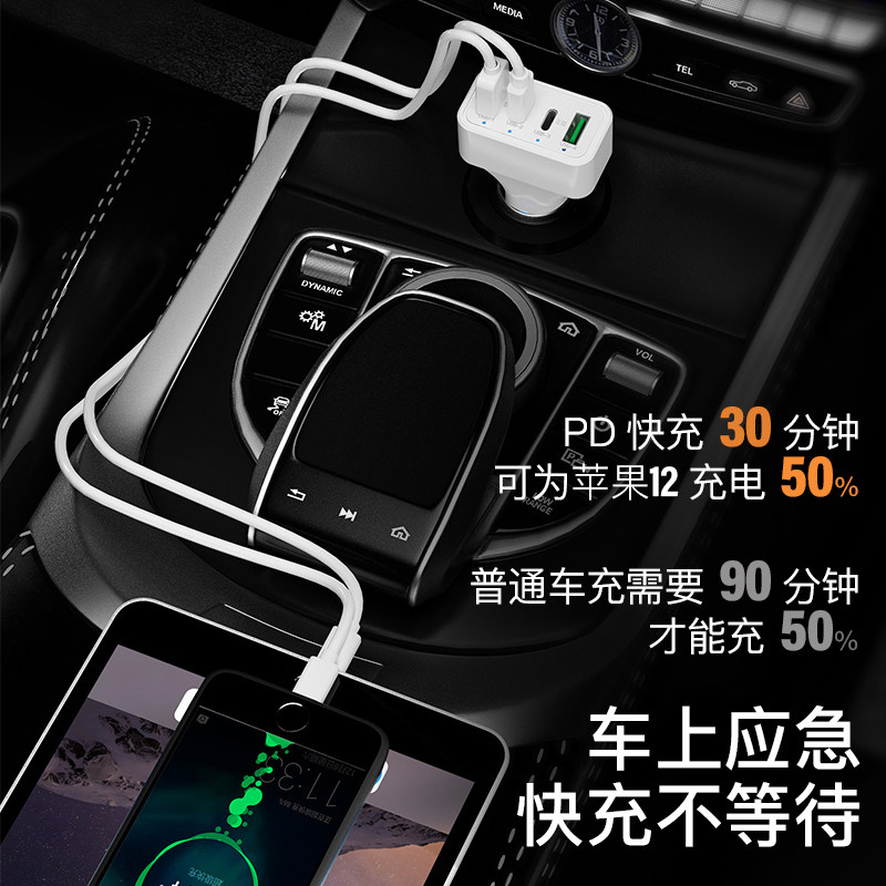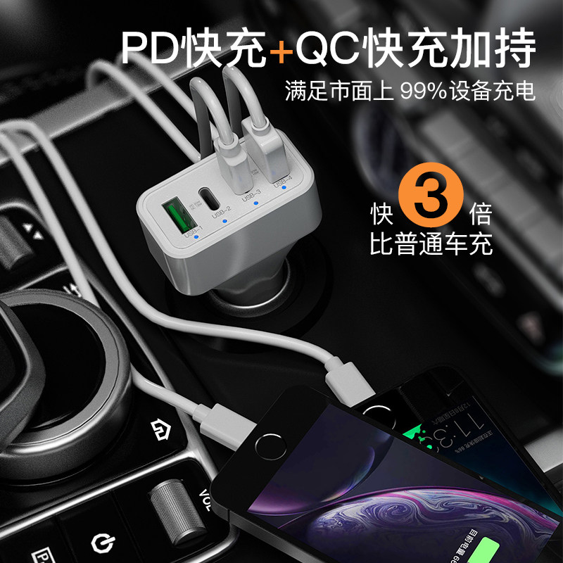 Bandung Xin on-board charger pd20W Quick charge multifunction car Cigarette Lighter Conversion Plug 40W One drag Three-to-two USB port in-car Supplies 24V wagon applicable Apple Huawei Xiaomi