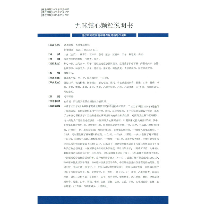 Jiuwei Jiuwei Zhenxin Granules 6g x 10 bags Box to nourish blood, soothe the nerves, nourish the brain, insomnia, nourish the spleen and nourish qi, loss of appetite, dizziness, anxiety, insomnia, pale complexion, fatigue, heart palpitations, heart spleen deficiency