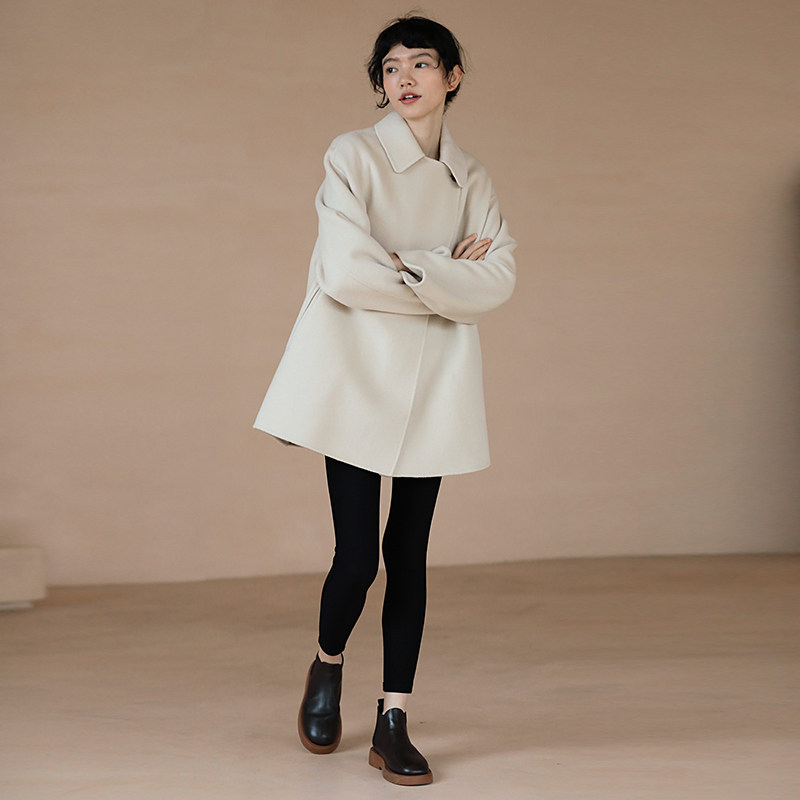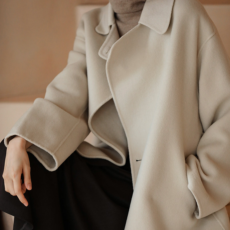 Miss Harteeth Spring new small crowddesign Inclined Flap Flap Minimalist All Wool Artisanal double face Coat Jacket Woman