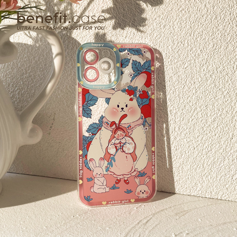 Benefit creative flower bunny girl applies Apple 13promax cartoon transparent mobile phone protection shell iphone12mini protective sleeve xsmax anti-fall xr