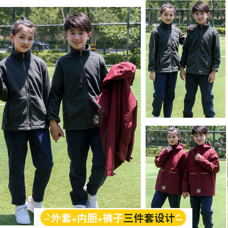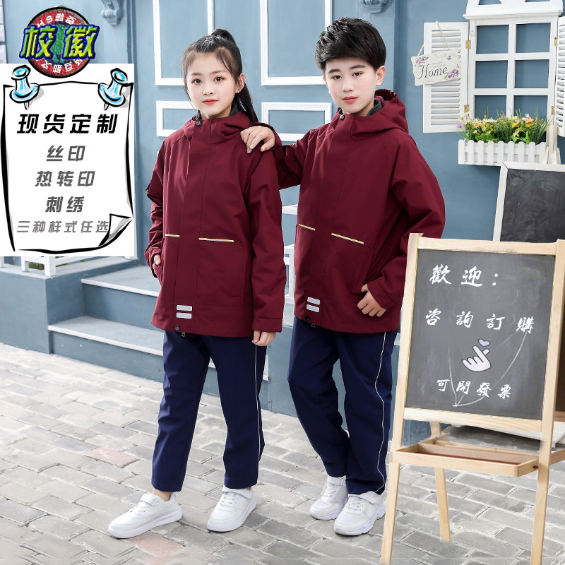 Student Wine Red School Uniform for men and women Winter Two sets of teenagers custom punching pants suit rocking grain suede liner