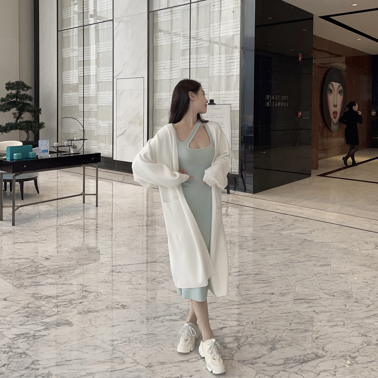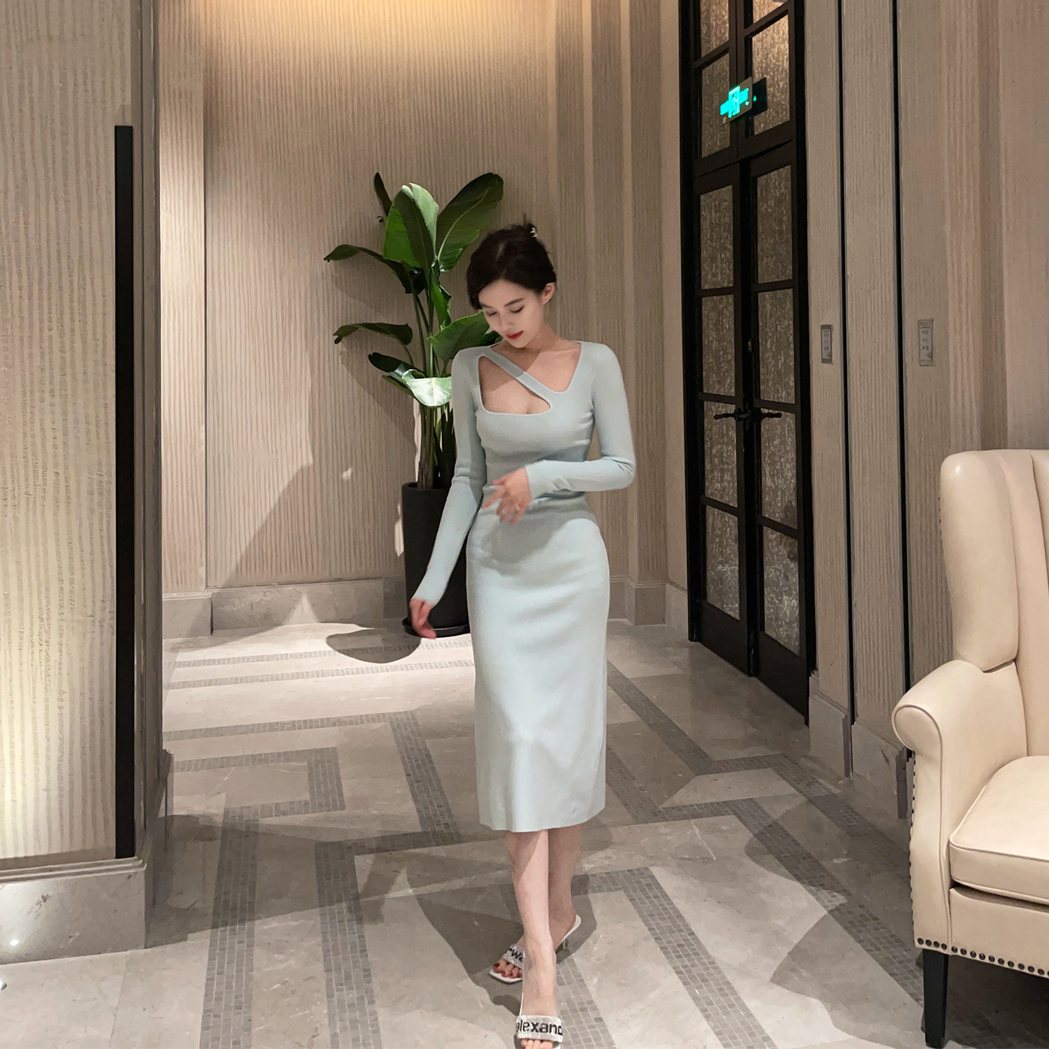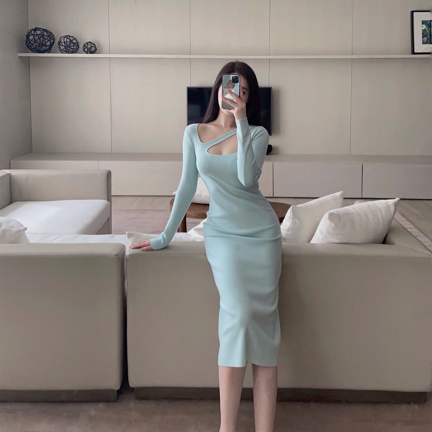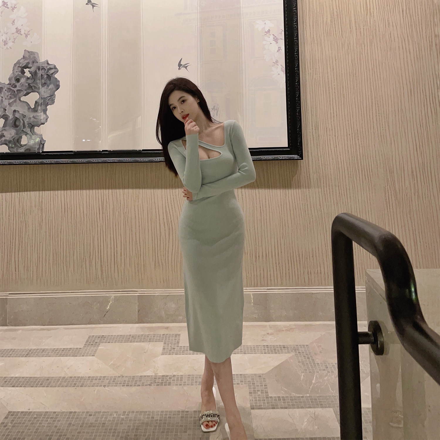 nicky a and sassy sexy bottoming sweater knitted dress women's spring and autumn new mint green with coat