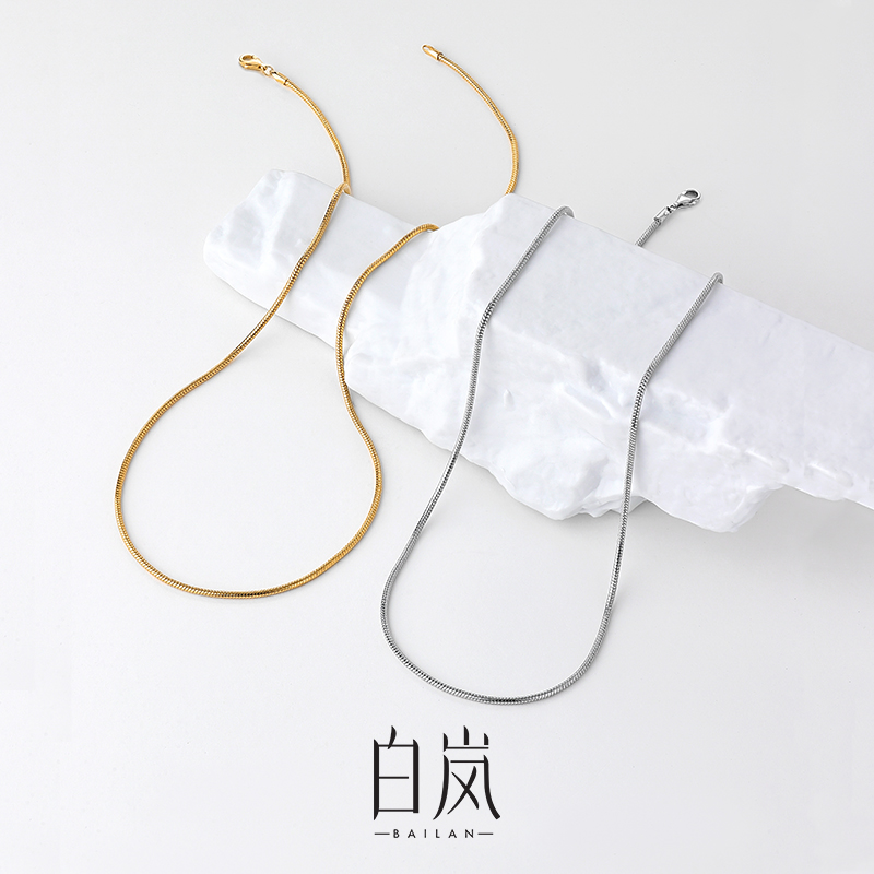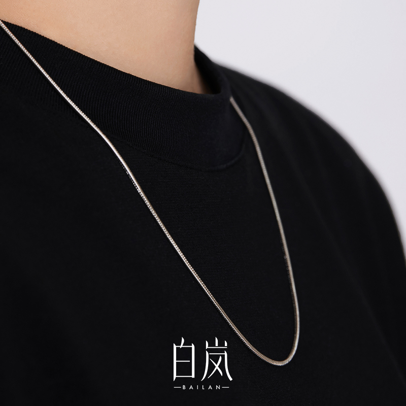 White Lan 925 Silver Necklace Woman Sweater Chain Atmospheric Temperament Lock Bone Chain Light Extravagant and Snake Bone Chain Stack LL040-Taobao