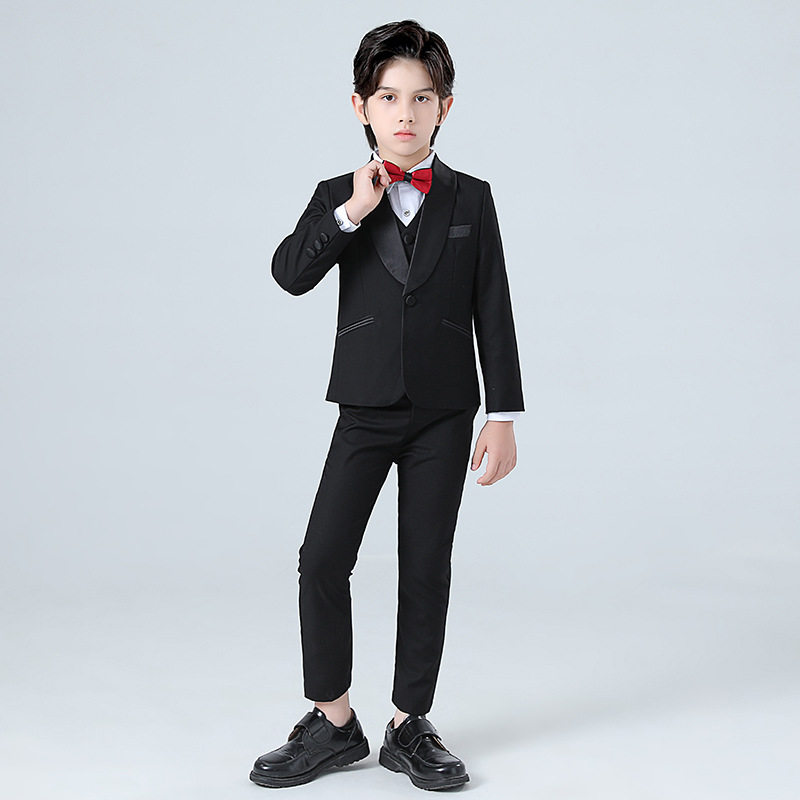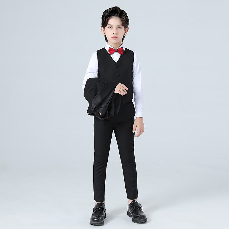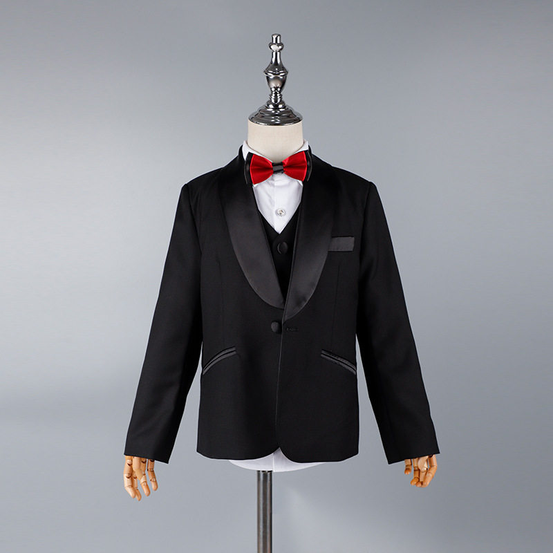 Black (suit pants, vest, bow tie) black (suit pants, vest, shirt, bow tie) black suit pants, vest and fleece shirt, bow tie