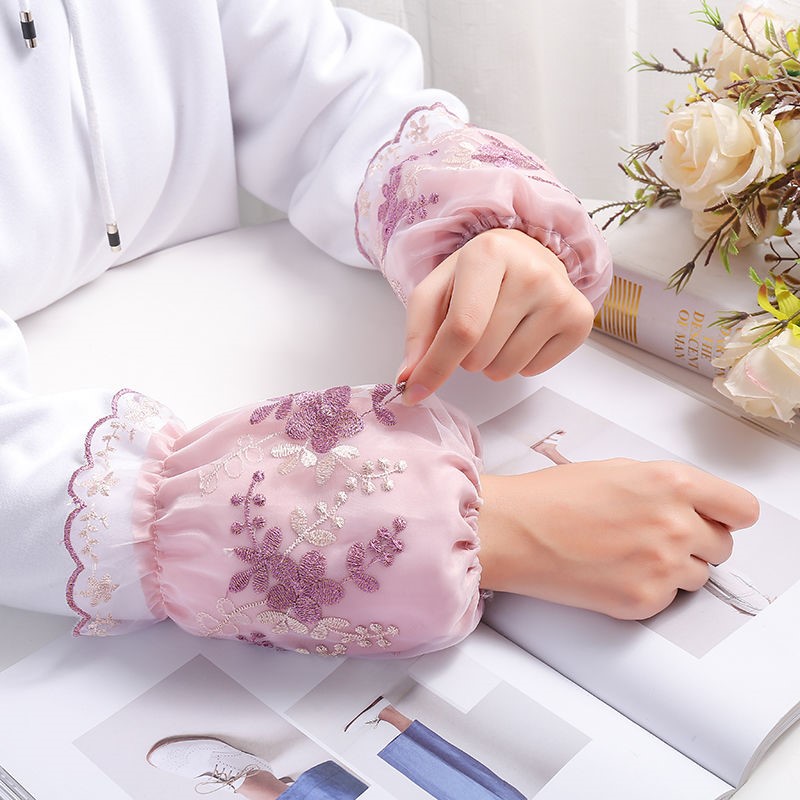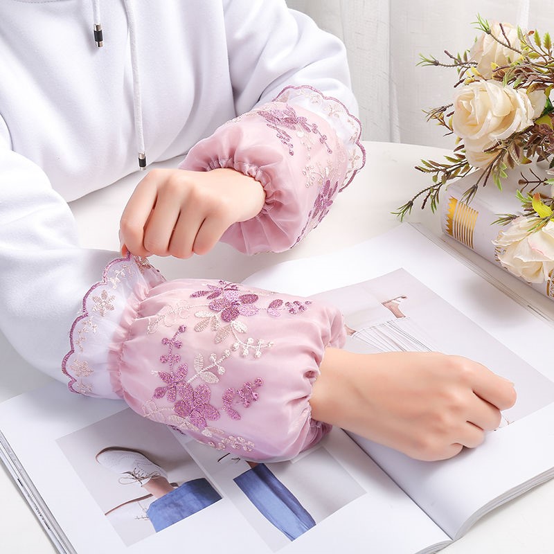 Han Edition Adult Embroidery Net Salace Sleeve Short Student Anti-fouling Sleeve Office Sleeve in Autumn and Winter Office Sleeve