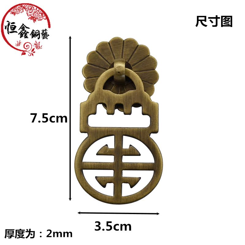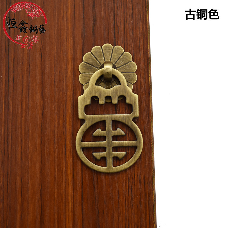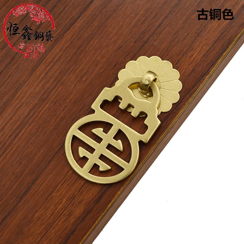 Pure copper drawer small handle middle-style antique furniture wardrobe overall cabinet door pendant copper handle all copper tag small handle
