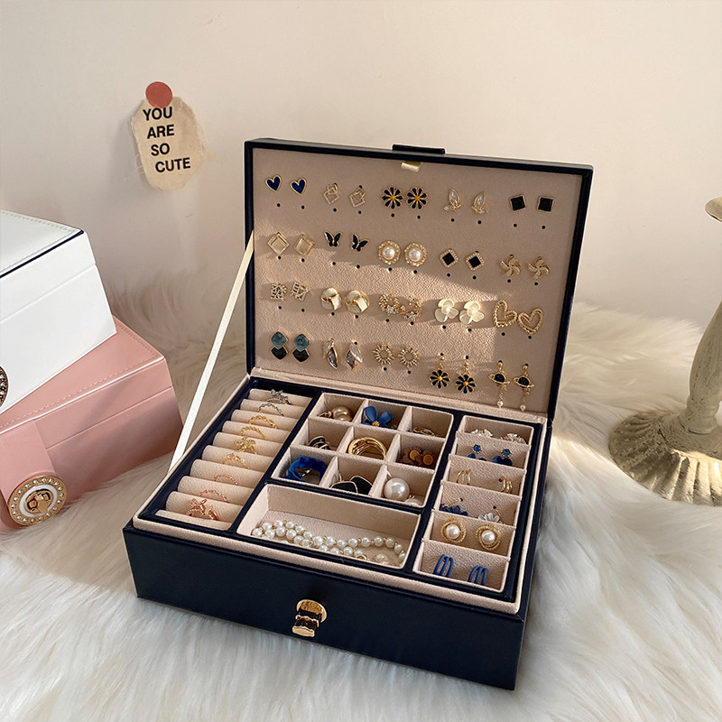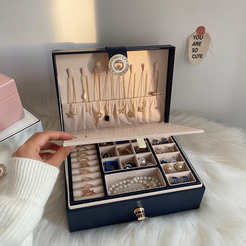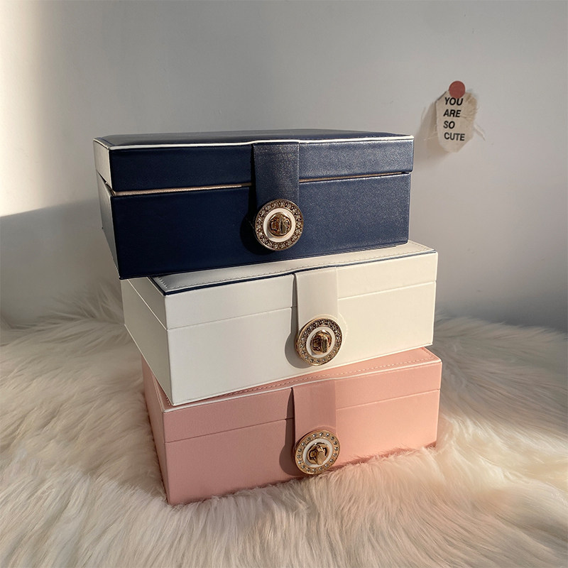 Navy blue diamond multi-layer large capacity jewelry box Pink belt diamond multi-layer large capacity jewelry box White diamond multi-layer large capacity jewelry box