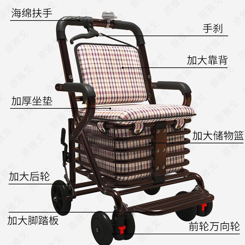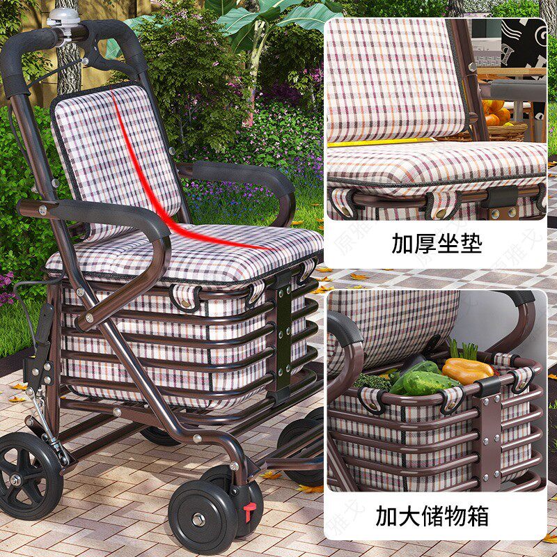 Old people's trolley can be pushed and sat on people's shopping cart hand push net red vegetable basket trolley elderly car walking aid walking aid