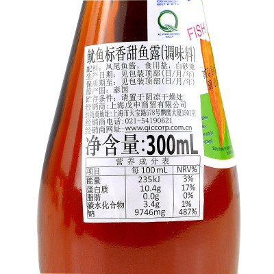 Thailand imported squid standard sweet fish sauce 300ml*1 dew-flavored Thai fish soy sauce seasoning fried vegetables and noodles