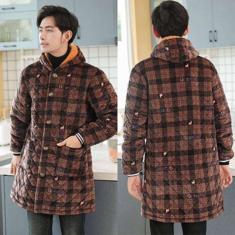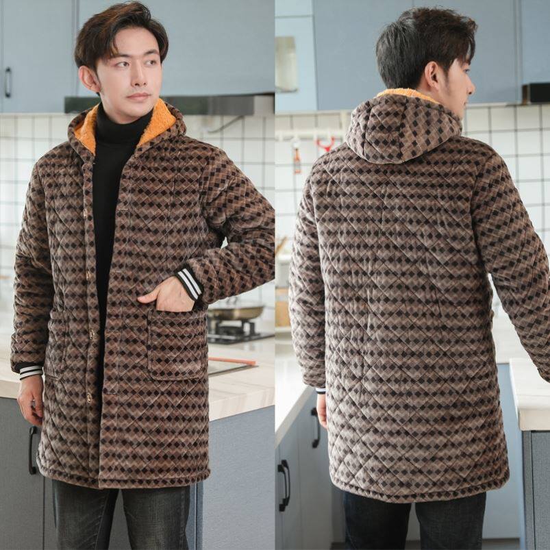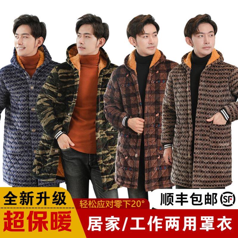 Men's soil plus velvet thickened smock winter cotton-padded jacket outer jacket warm 2021 new kitchen apron anti-fouling large size