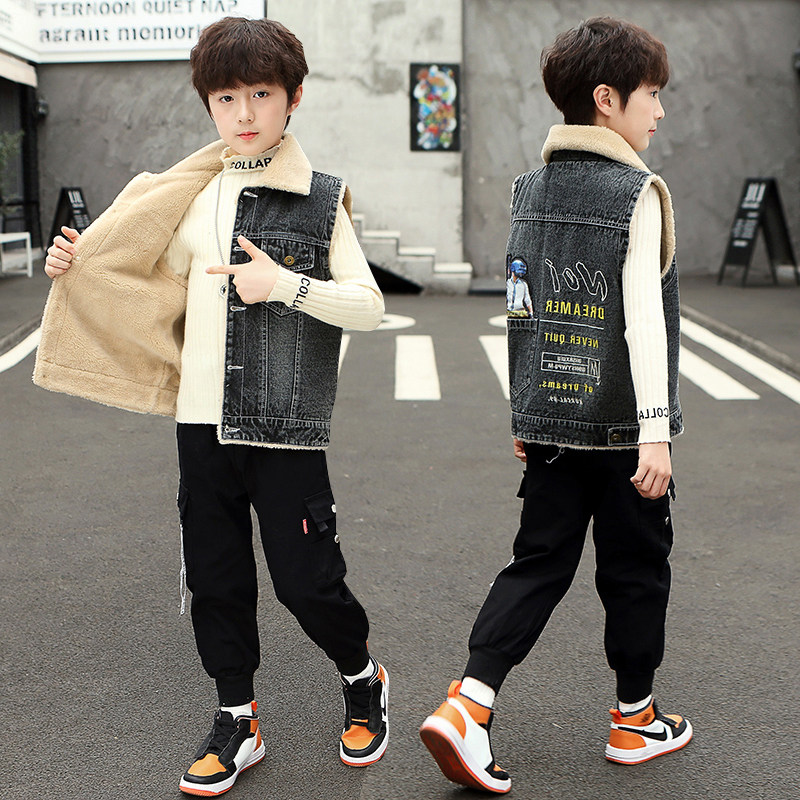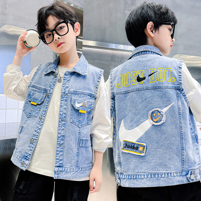 Children's denim waistcoat for men's spring and autumn 2021 new autumn and winter CUHK Tong-kan shoulder boy Yansends summer vest outwear