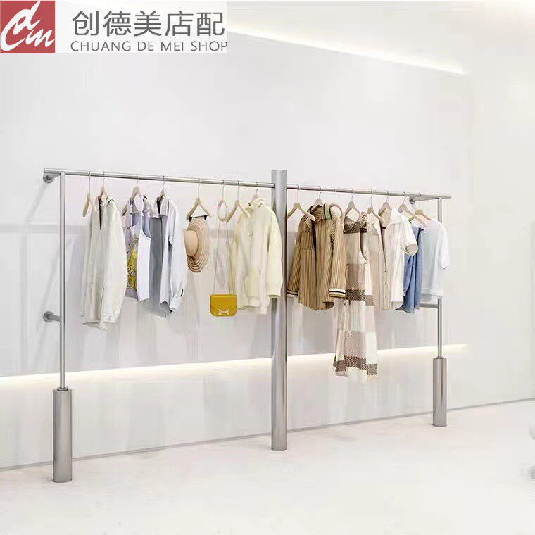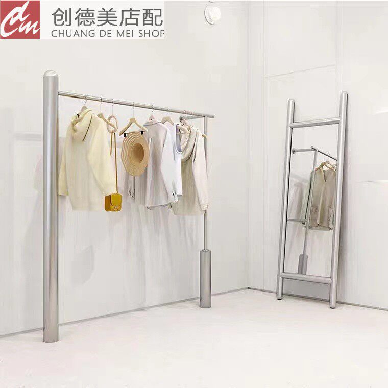 Clothing store men's and women's clothing creative display stand stainless steel pole wall floor display rack hanger children's clothing display rack