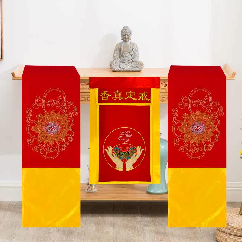 Buddhist embroidery supplies table, flag, ring, true fragrance tray, a set of custom Buddhist Hall hanging flags craft supplies