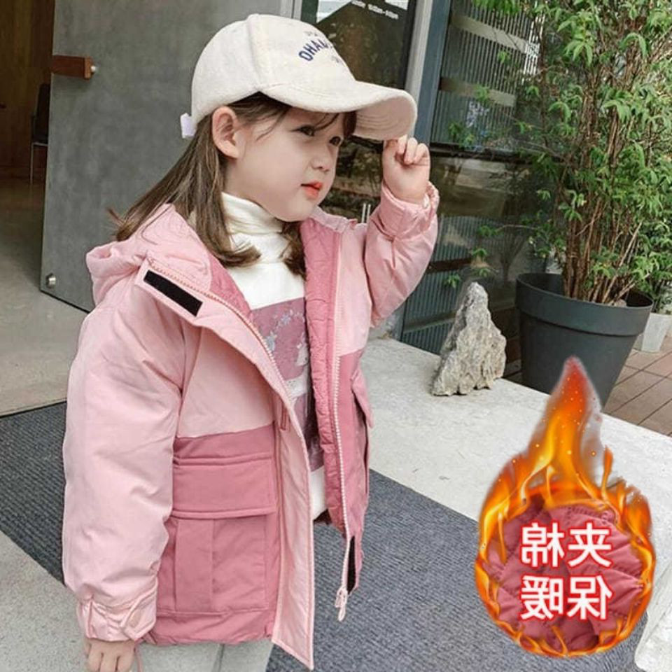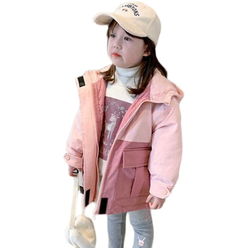 Girls' coat 2022 winter new fashion quilted thickened color-blocking jacket children's baby warm top