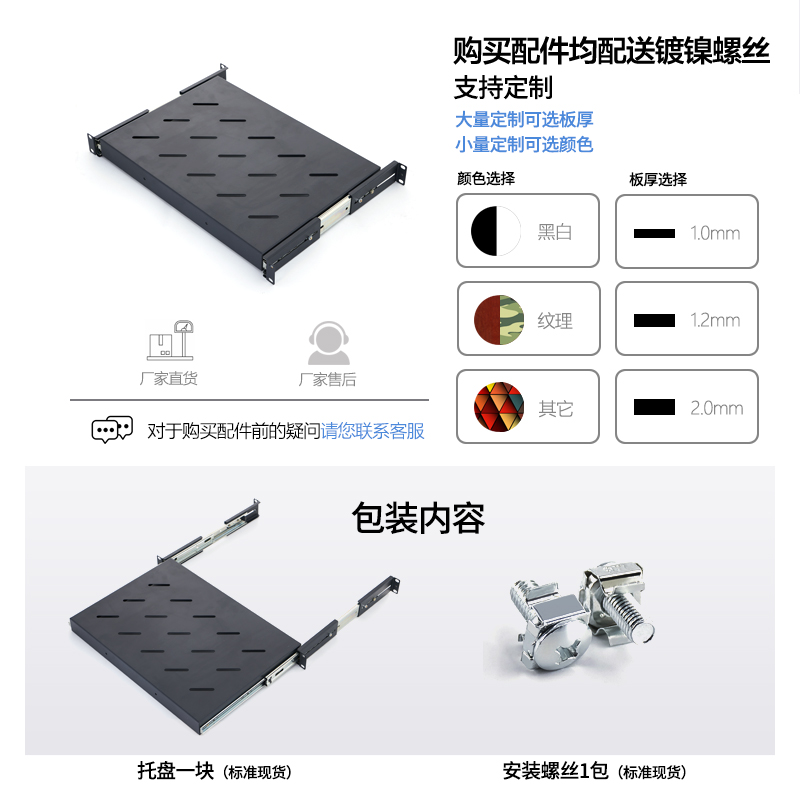 Server cabinet 1U sliding keyboard layer 1 rack-mounted network cabinet tray non-standard custom bracket white