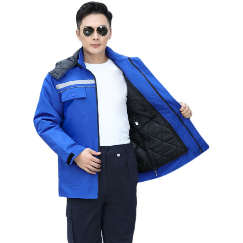 Winter Cotton Padded Jacket Long Sleeve Workwear Suit Thicken Double Counter Workshop Gas Station Worker Labor clothing Anti-cold suit Men and women