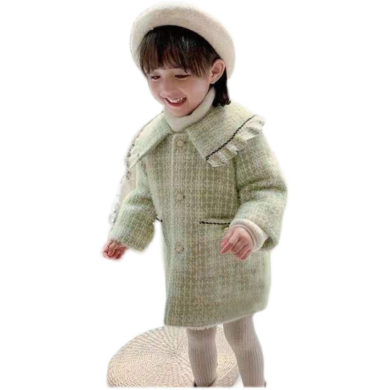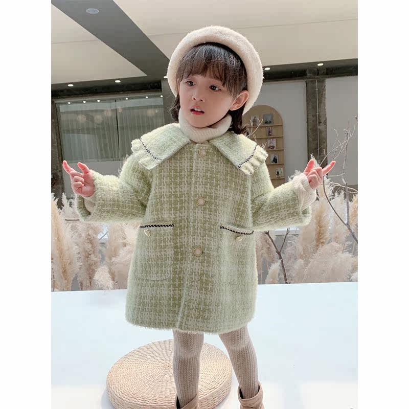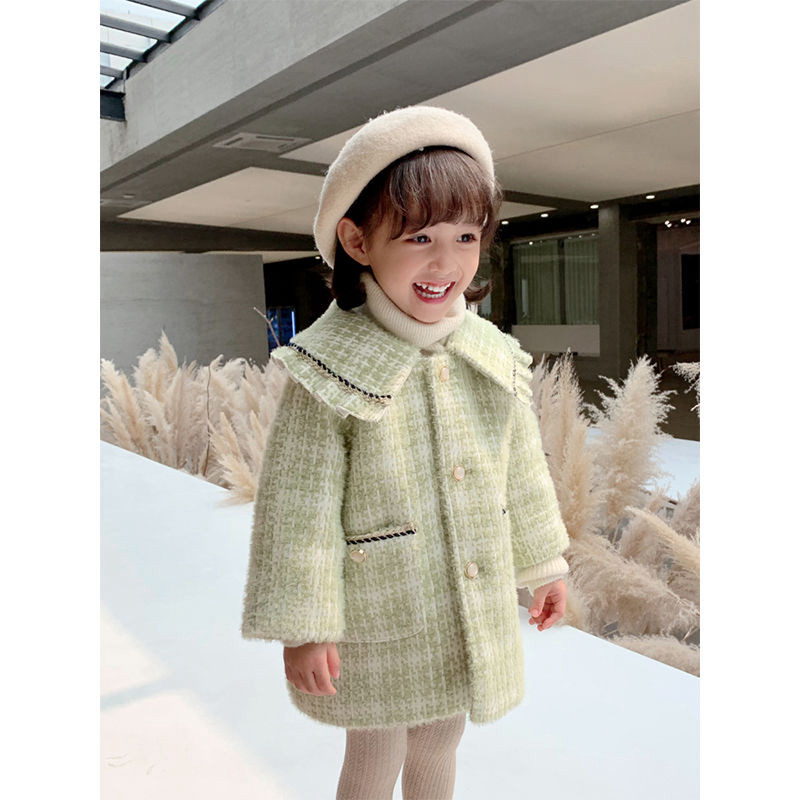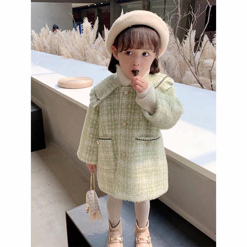 Girls' coat 2021 winter new Western style small fragrance thickened quilted woolen coat children's baby top
