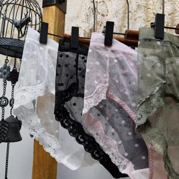 Size large foreign trade sexy transparent lace mesh fat girl briefs head cute panties 2 feet 4-3 feet 8