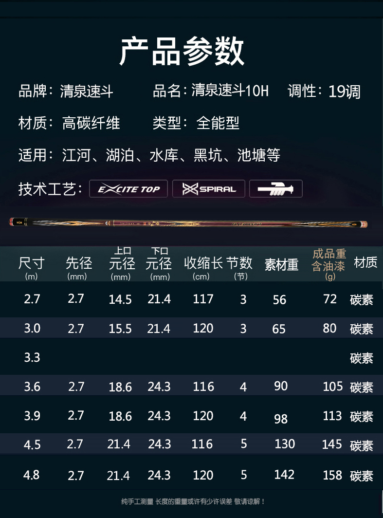 Qingquan Sudou 10h19 adjustment fishing rod black pit fly knock high carbon fishing rod super hard and ultra light Taiwan fishing rod raphie rod