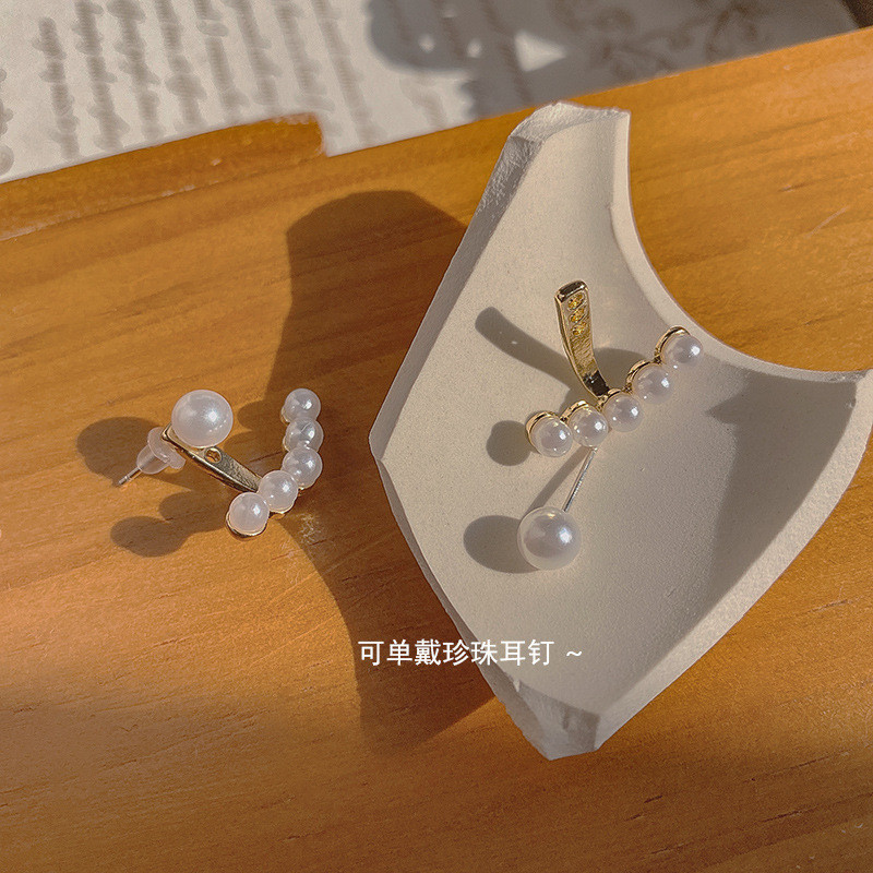 Rear hanging French pearl earrings Korean simple fashion earrings women's unique two-wear niche earrings