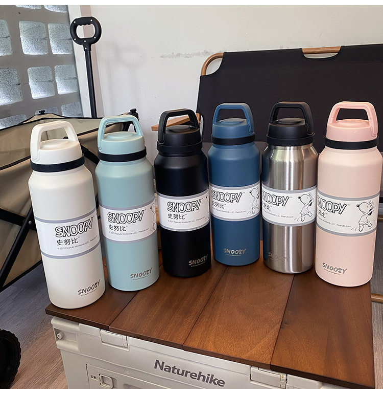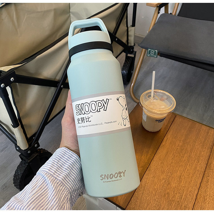 Snoopy outdoor large-capacity 304 stainless steel straw insulation cup kettle 1400ML men and women with handle