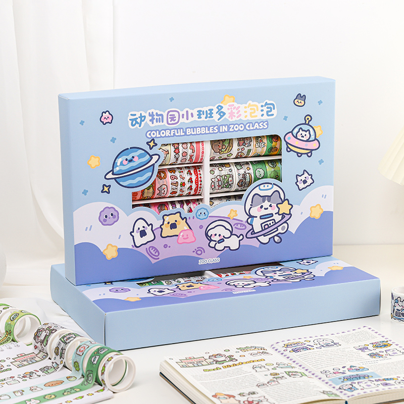 100 rolls of handbook tape sticker hand account film full set of colorful bubble color and paper children's cartoon cute cheap girls handbook gift box set ancient style dispensing cane confession tape