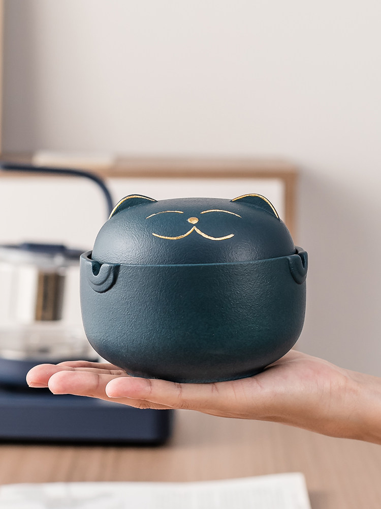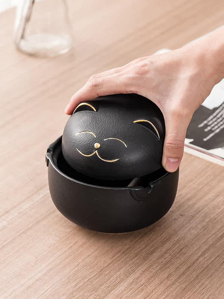 Lucky cat ashtray anti-smoke smell with lid frosted ceramic cute cartoon style dormitory upper bunk artifact custom logo - Taobao