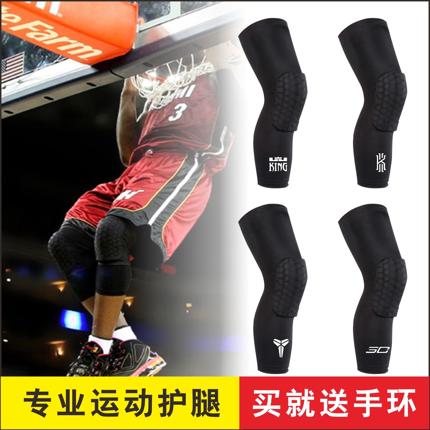 Basketball honeycomb anti-collision knee pads star Kobe James Irving leggings breathable men and women protective fitness sports