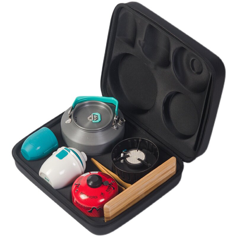 Outdoor Travel Tea Set Portable Kung Fu Tea Built Tea kettle in one in-car wild stove head