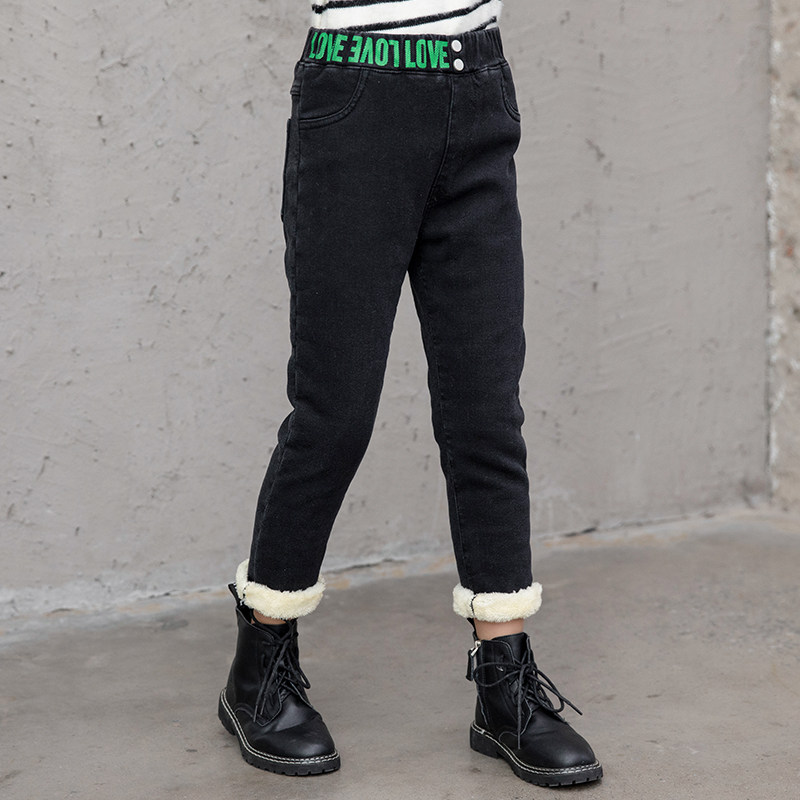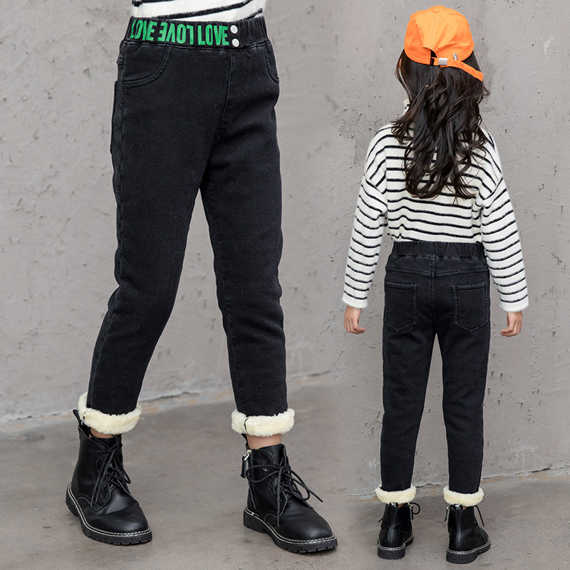 Girls plus jeans 2021 new Korean edition of the winter lamb suede warm trousers and thicken pants