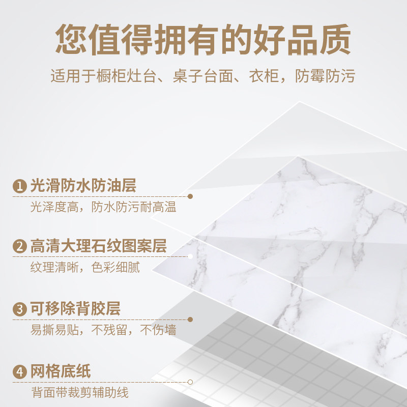 Kitchen oil-proof sticker waterproof self-adhesive wallpaper countertop cabinet cabinet refurbished ceramic tile moisture-proof stove marble sticker