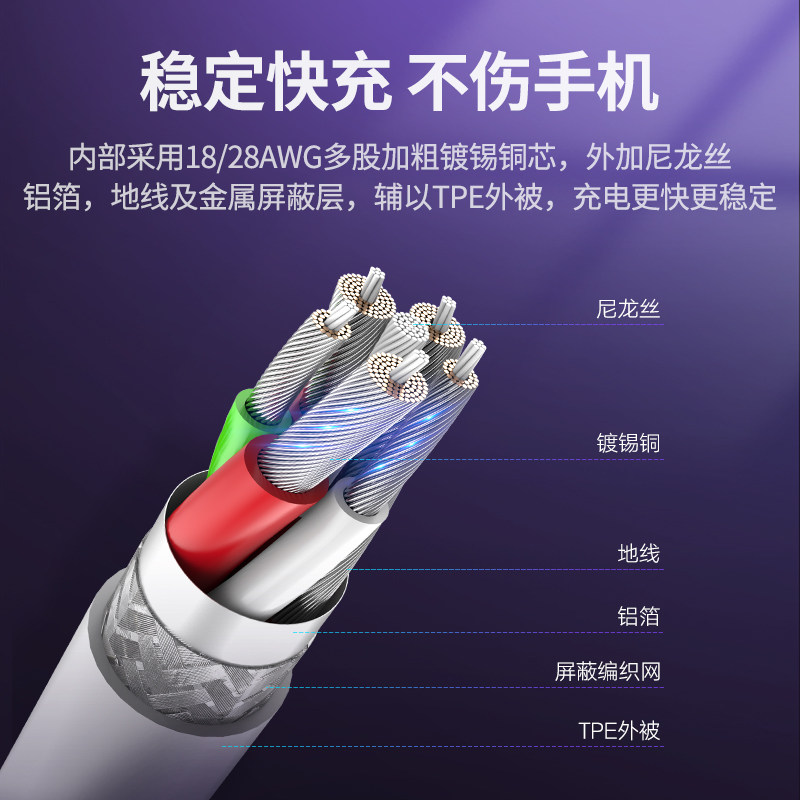 Green Union type-c data line 5atpc Fast filling tapyc charging line applicable Huawei super fast charging Xiaomi mobile phone
