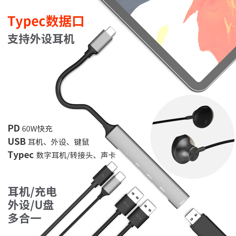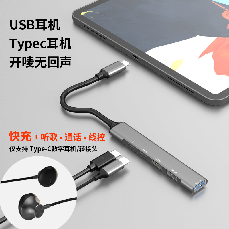 Dual c headphone switching 3USB expansion (five all-in-one grey) Typec digital headphones (ipad no echo grey) Typec turns 3 5 headphone adapter (tour)