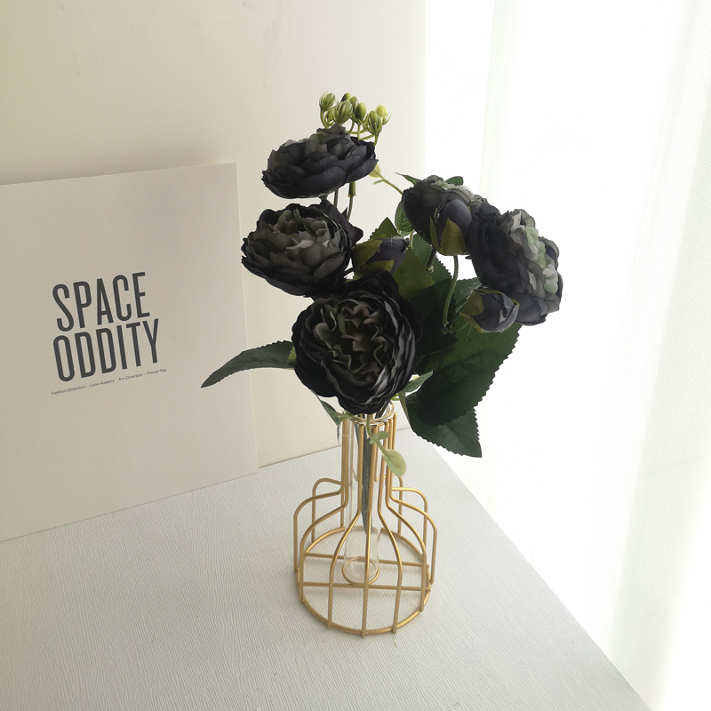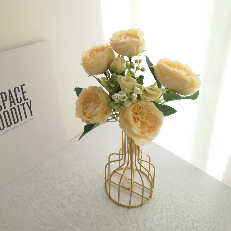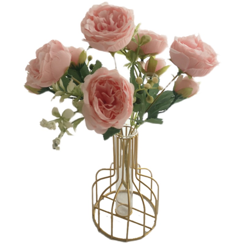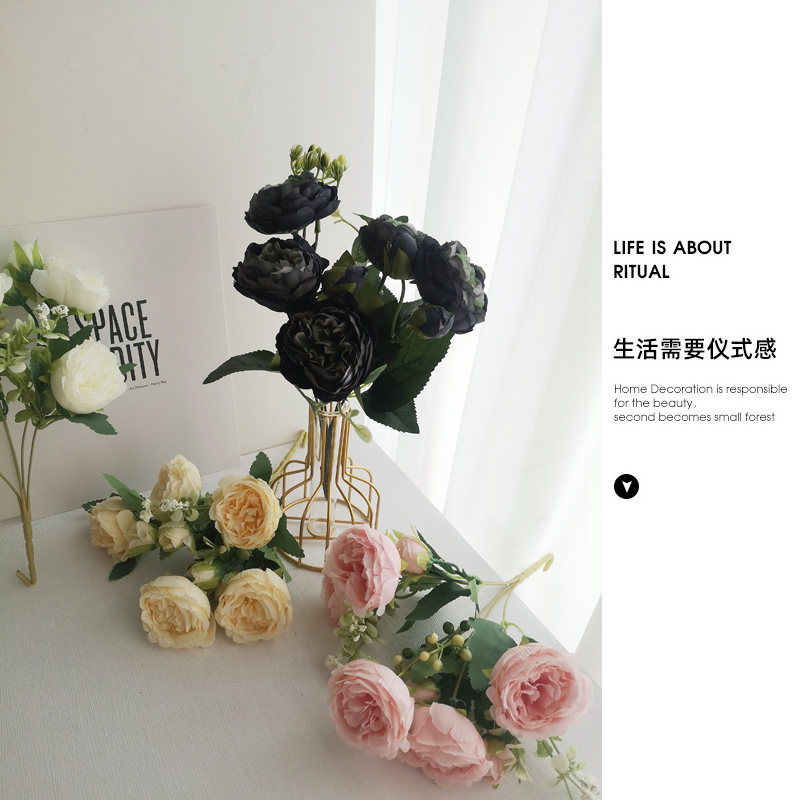 5 pink foreign peonies, golden small vase, 5 champagne foreign peonies, golden small vase, 5 white foreign peonies, golden small vase, 5 black purple foreign peonies, golden small vase